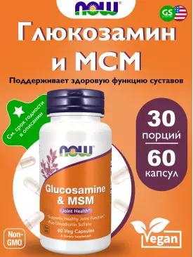 Суставы, связки Glucosamine & MSM 60 вег. капсул, нейтральный NOW FOODS Подписка на товар Артикул 31456