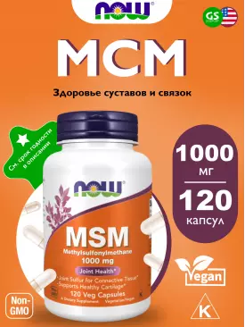Суставы, связки MSM 1000 mg - Метилсульфонилметан МСМ 120 веган капсул NOW FOODS Подписка на товар Артикул 38185