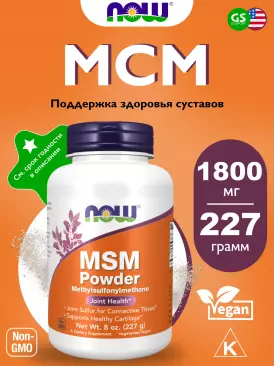 Суставы, связки MSM Pure Powder 8 oz (227 g) 227 г, Натуральный NOW FOODS Подписка на товар Артикул 38853