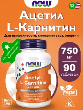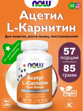 L-Карнитин Acetyl L-Carnitine 500 mg (Ацетил-L-Карнитин) 100 веган капсул NOW FOODS Подписка на товар Артикул 38611