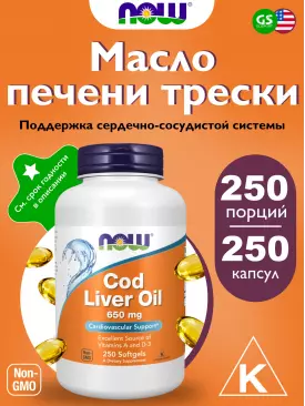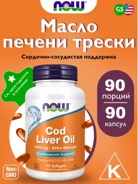 Omega 3 Cod Liver Oil 1000 mg Extra Strength 90 гелевых капсул NOW FOODS Подписка на товар Артикул 38892