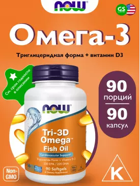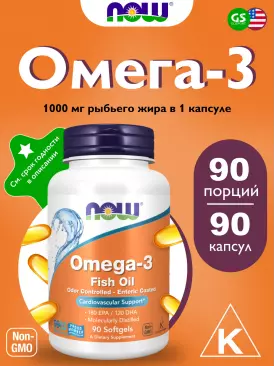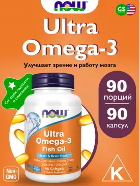 Omega 3 Ultra Omega-3 Fish Oil 500 EPA / 250 DHA 90 гелевых капсул NOW FOODS Подписка на товар Артикул 19633