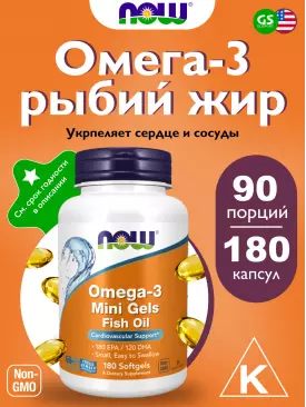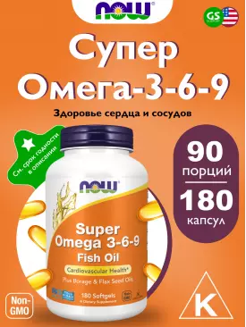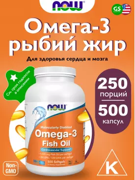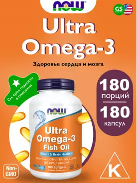 Omega 3 Ultra Omega-3 Fish Oil 500 EPA / 250 DHA 180 гелевых капсул NOW FOODS Подписка на товар Артикул 38538