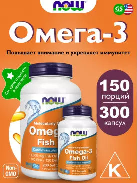 Omega 3 Omega-3 - Омега 3 1000 мг 300 гелевых капсул, Нейтральный NOW FOODS Подписка на товар Артикул 38179