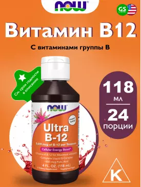 Витаминный комплекс Ultra B-12 Liquid 5000 mcg B-12 118 ml 118 мл NOW FOODS Подписка на товар Артикул 38181
