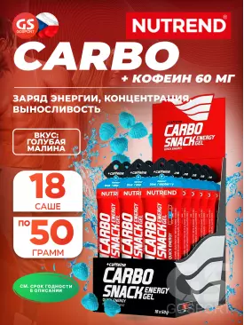 Энергетический гель Carbosnack 60mg caffeine саше 18 шт x 50 г, Голубая малина NUTREND Подписка на товар Артикул 1577