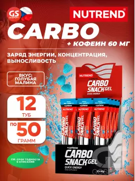 Энергетический гель Carbosnack 60mg caffeine туба 12 шт x 50 г, Голубая малина NUTREND Подписка на товар Артикул 34401