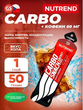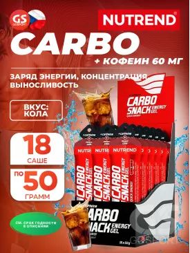 Энергетический гель Carbosnack 60mg caffeine саше 18 шт x 50 г, Кола NUTREND Подписка на товар Артикул 1576