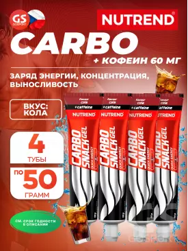 Энергетический гель Carbosnack 60mg caffeine туба 4 шт x 50 г, Кола NUTREND Подписка на товар Артикул 39953