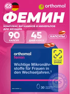 -12% 3 693 q 4 196 q 4 196 q 000 Витамины для женщин Femin курс 30 дней Orthomol В корзину Артикул 17502