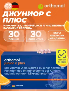 Витамины для детей Junior C plus курс 30 дней, Апельсин-Мандарин Orthomol Подписка на товар Артикул 1808