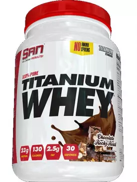 Сывороточный протеин 100% Pure Titanium Whey 909 г, Шоколадный Рокки Роуд SAN Подписка на товар Артикул 20341