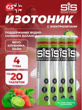 Изотоники в шипучках GO Hydro Tablet 20s 4 x 20 таблеток, Клубника - Лайм SCIENCE IN SPORT (SiS) Подписка на товар Артикул 34450