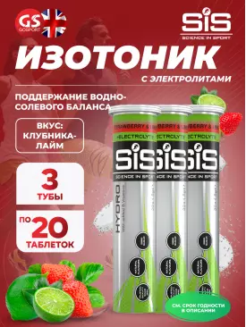 -10% 8 640 q 9 600 q 9 600 q 000 Изотоники в шипучках GO Hydro Tablet 20s_3 6 x 20 таблеток, Клубника - Лайм, Апельсин SCIENCE IN SPORT (SiS) В корзину Артикул 34898