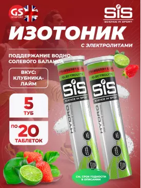 Изотоники в шипучках GO Hydro Tablet 20s 5 x 20 таблеток, Клубника - Лайм SCIENCE IN SPORT (SiS) Подписка на товар Артикул 34451