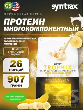 -12% 5 894 q 6 698 q 6 698 q 000 Комплексный протеин Trophix 2270 г, Банановый пудинг SYNTRAX В корзину Артикул 39602
