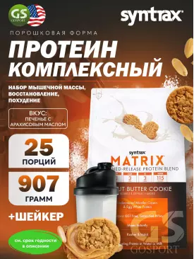 Комплексный протеин Matrix 2 lbs 907 г + шейкер, Печенье с арахисовым маслом SYNTRAX Подписка на товар Артикул 39307