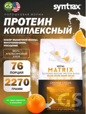 -10% 6 849 q 7 610 q 7 610 q 000 Комплексный протеин Matrix 5 lbs 2270 г, Бисквит со сливками SYNTRAX В корзину Артикул 20696
