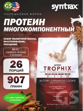 -12% 5 894 q 6 698 q 6 698 q 000 Комплексный протеин Trophix 2270 г, Сдобное печенье с корицей SYNTRAX В корзину Артикул 39603