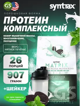 Комплексный протеин Matrix 2 lbs 907 г + шейкер, Мятное печенье SYNTRAX Подписка на товар Артикул 39305