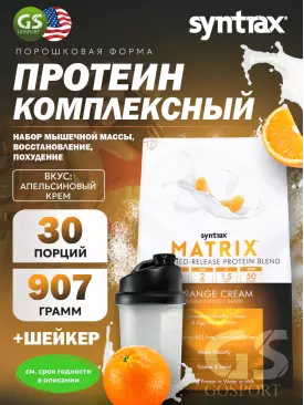 Комплексный протеин Matrix 2 lbs 907 г + шейкер, Апельсиновый крем SYNTRAX Подписка на товар Артикул 39306