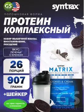 Комплексный протеин Matrix 2 lbs 907 г + шейкер, Печенье крем SYNTRAX Подписка на товар Артикул 39312