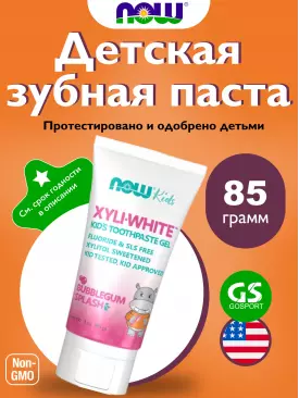 Зубная паста и Бальзамы Xyliwhite kids вкус Бабл-гам 85 грамм NOW FOODS Подписка на товар Артикул 40079