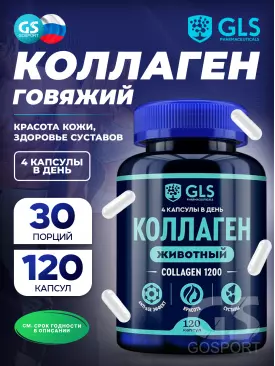 COLLAGEN Коллаген говяжий 1200 мг с витамином С 120 капсул GLS pharmaceuticals Подписка на товар Артикул 39779