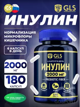 Для иммунитета Инулин 2000 мг, пребиотик 180 капсул GLS pharmaceuticals Подписка на товар Артикул 39776