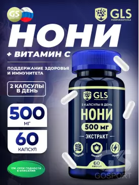 Экстракты Нони (экстракт плодов) 500 мг с витамином С 60 капсул GLS pharmaceuticals Подписка на товар Артикул 39727