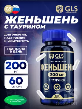 Экстракты Женьшень (экстракт корня) 200 мг с таурином 60 капсул GLS pharmaceuticals Подписка на товар Артикул 39780