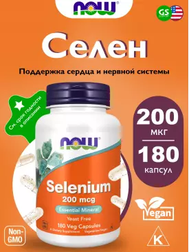 Минералы Selenium 200 mcg Yeast Free - Селен 180 веган капсул NOW FOODS Подписка на товар Артикул 38590