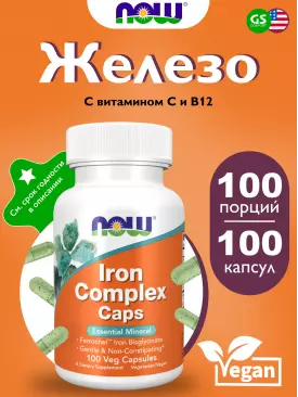 Минералы Iron 18 mg Ferrochel Bisglycinate 120 веган капсул NOW FOODS Подписка на товар Артикул 38813