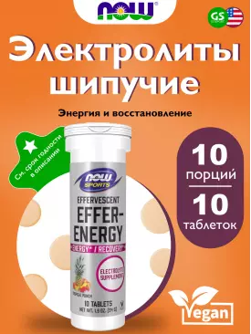 Солевые таблетки Effer-Hydrate, Electrolyte Supplement 10 шипучих таблеток, Тропический пунш NOW FOODS Подписка на товар Артикул 38869