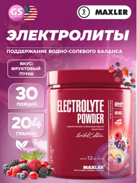 Солевые таблетки Electrolyte Powder 15 х 6,8 г, Фруктовый пунш MAXLER (USA) Подписка на товар Артикул 40406