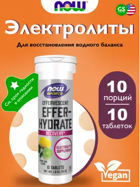 Солевые таблетки Effer-Hydrate, Electrolyte Supplement 10 шипучих таблеток, Лимон - Лайм NOW FOODS Подписка на товар Артикул 38870