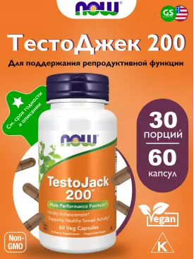 Тестобустеры TestoJack 200 - Тесто Джек 60 веган капсул, Нейтральный NOW FOODS Подписка на товар Артикул 19289