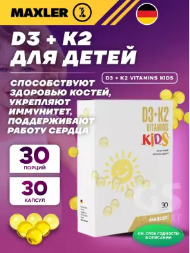 -10% 780 q 867 q 867 q 000 Витамины для детей Omega-3 Kids 30 гелевых капсул MAXLER В корзину Артикул 39619