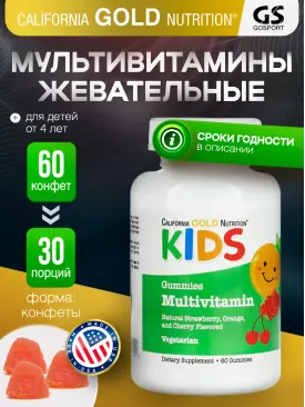Витамины для детей Kids Multivitamin Gummies 60 жевательных конфет, Апельсин - Клубника - Вишня California Gold Nutrition Подписка на товар Артикул 37899