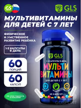 Витамины для детей Мультивитамины для детей с 7 лет 60 капсул GLS pharmaceuticals Подписка на товар Артикул 39729