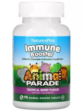 Витамины для детей Animal Parade Immune Booster Chewable 90 жевательных таблеток, Тропические фрукты NaturesPlus Подписка на товар Артикул 37476