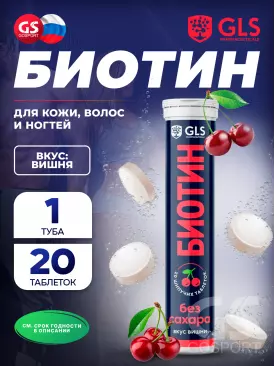 Витамины группы B Биотин (витамин В7) 20 шипучих таблеток, Вишня GLS pharmaceuticals Подписка на товар Артикул 40392