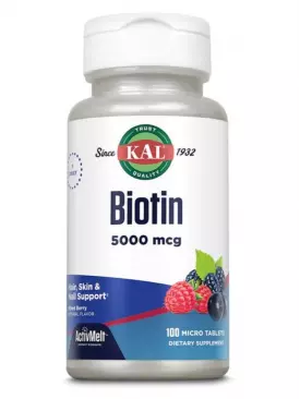 Витамины группы B Biotin ActivMelt 5000 mcg 100 таблеток, Ягодный микс KAL Подписка на товар Артикул 40070