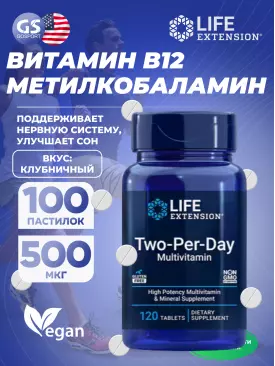 Витамины группы B Vitamin B12 Methylcobalamin 500 mcg 100 леденцов, Клубника Life Extension Подписка на товар Артикул 40060