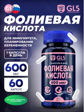 Витамины группы B Фолиевая кислота 600 мкг 60 капсул GLS pharmaceuticals Подписка на товар Артикул 40373