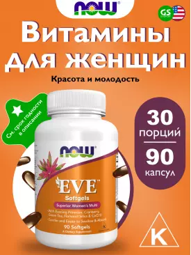 Витамины для женщин EVE Women's Multiple Vitamin 180 капсул NOW FOODS Подписка на товар Артикул 28508