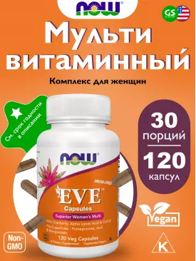 Витамины для женщин EVE Womens Multiple Vitamin iron free 120 капсул NOW FOODS Подписка на товар Артикул 28509