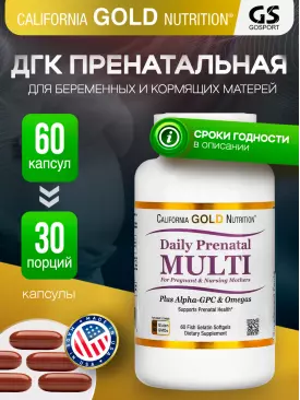 Витамины для женщин Daily Prenatal Multi for Pregnant & Nursing Mothers 60 капсул, Нейтральный California Gold Nutrition Подписка на товар Артикул 37103