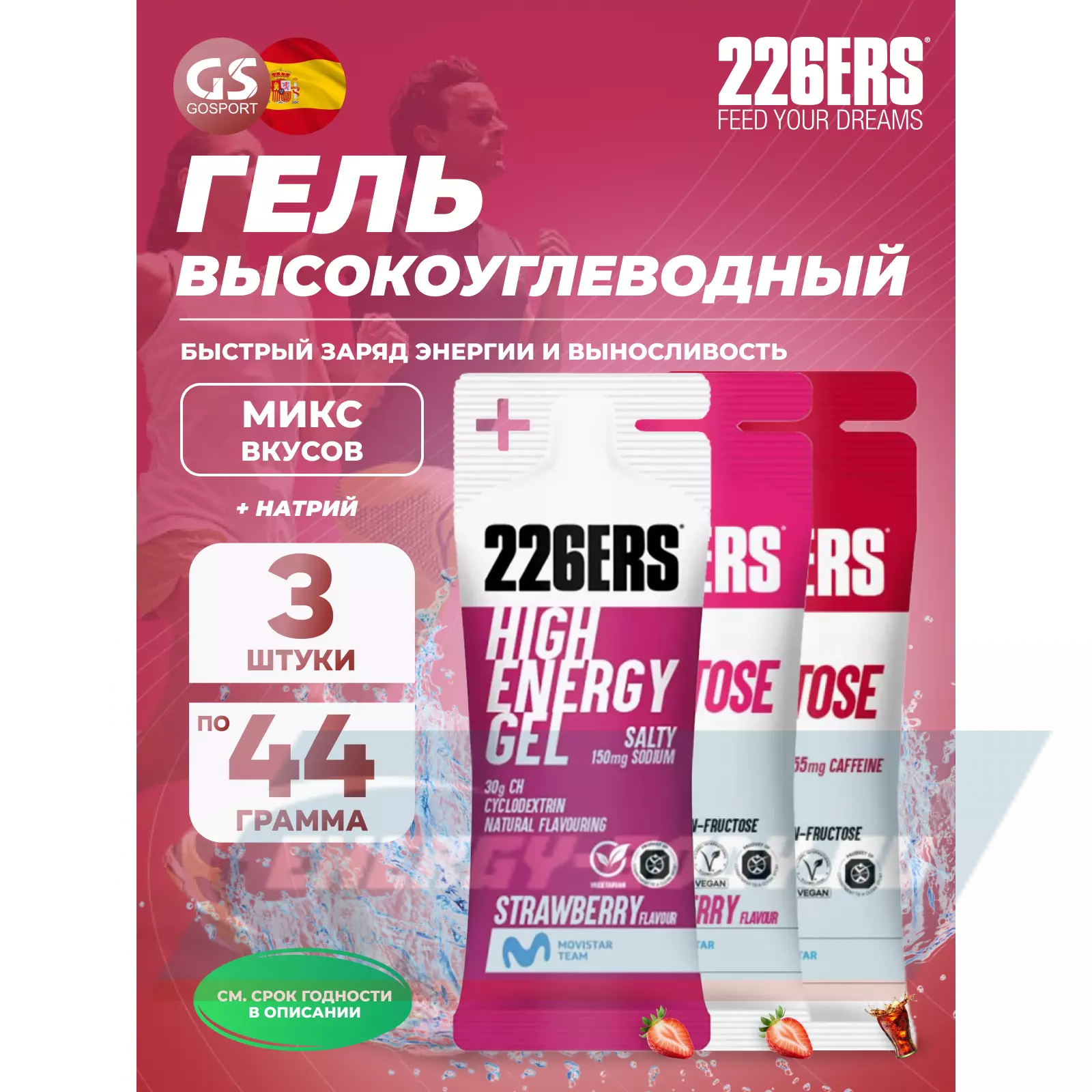 226ERS High Energy Gel + sodium 150 mg 3 x 44 г, Микс 7 — Быстрый заряд энергии и выносливость