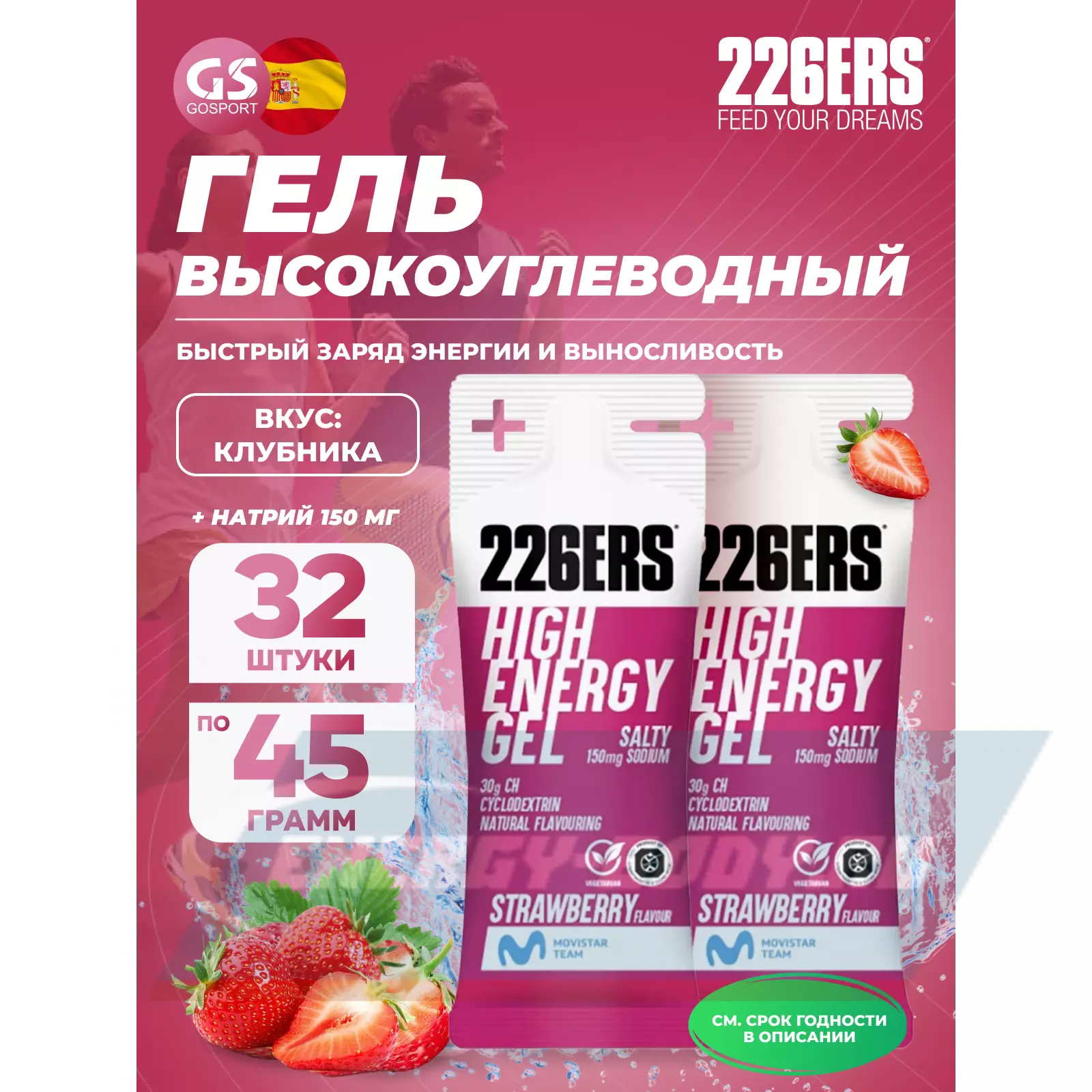 226ERS High Energy Gel + sodium 150 mg 32 x 45 г, Клубника — Быстрый заряд энергии и выносливость